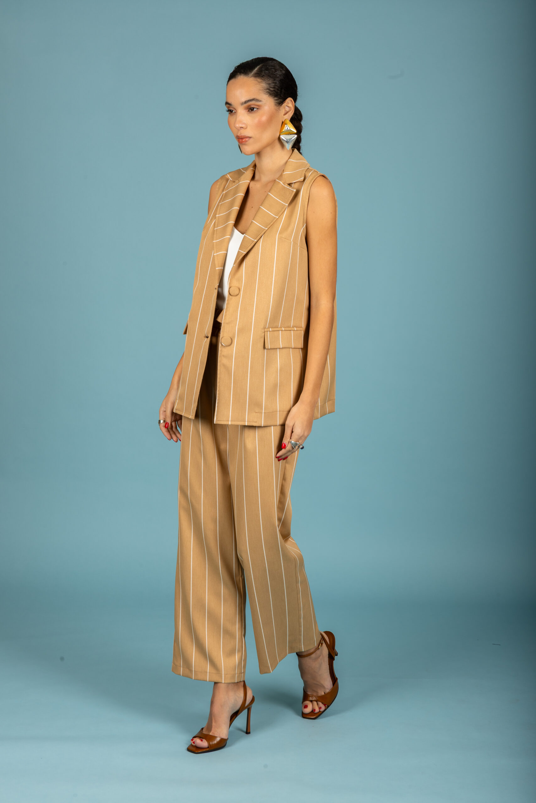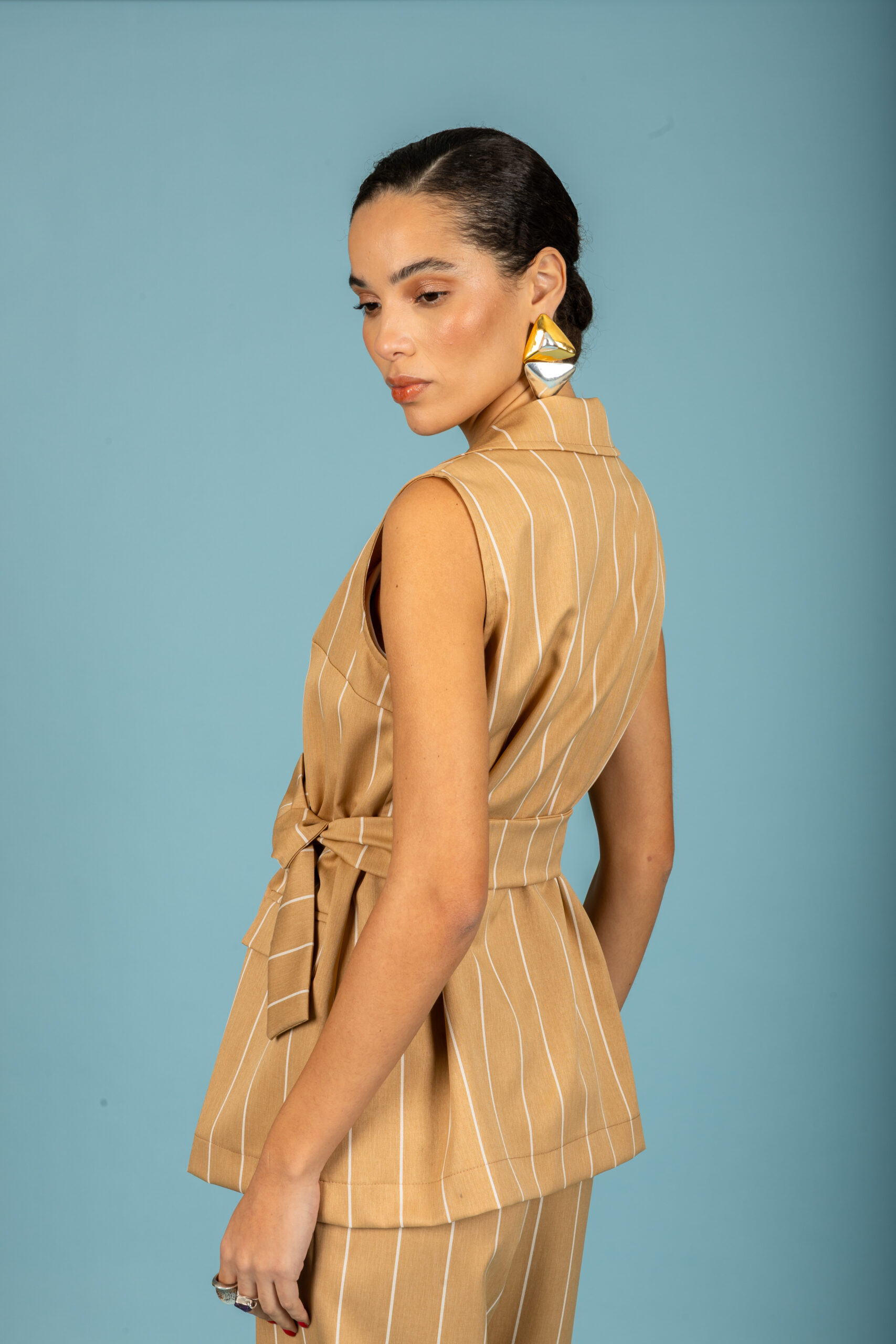 Αμάνικο blazer σε χρώμα beige με ρίγα ecru